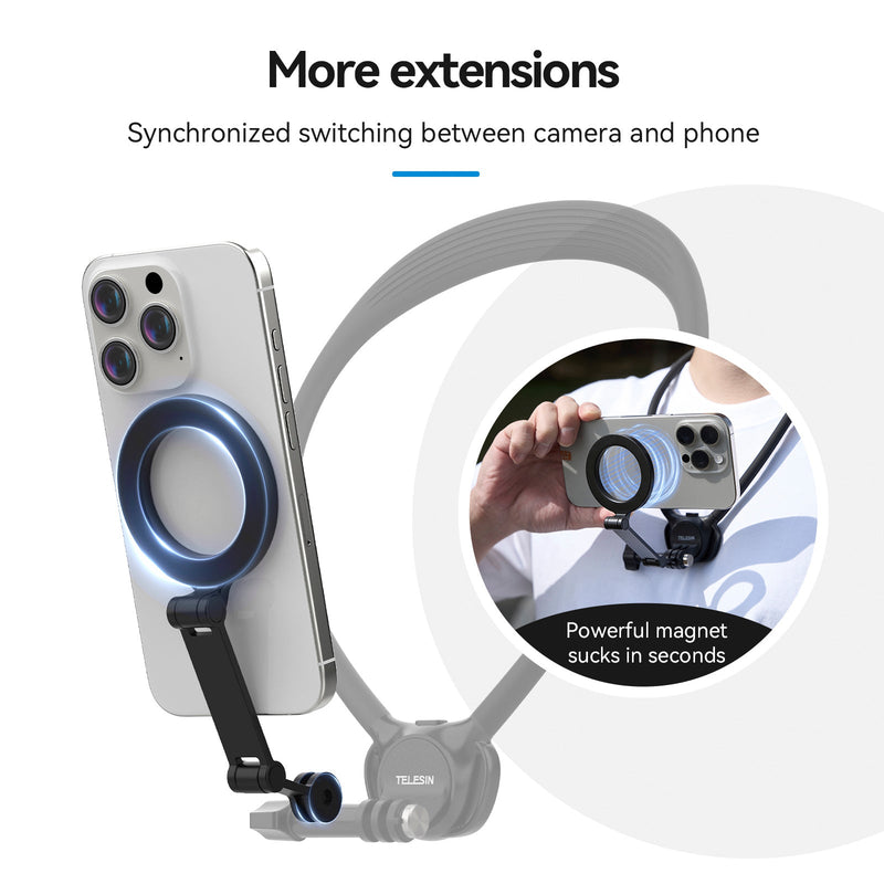 More extensions, Synchronized switching between camera and phone. Powerful magnet sucks in seconds.