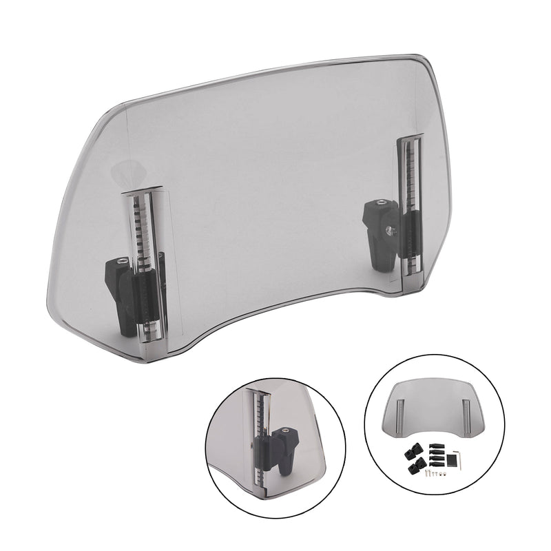 1:Adjustable windshield, fixed on the above of original windshield, heightening for better head protection rider safety.