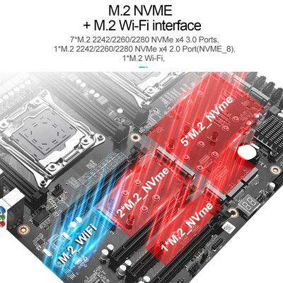 Extended interface: 7*M.2 NVMe x4 3.0 Ports, 1*M.2 NVMe x4 2.0 Port(NVME 8), 1*M.2 Wi-Fi