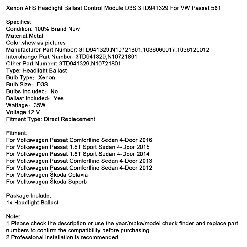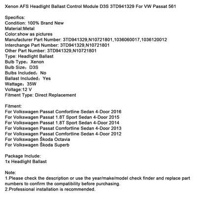 Xenon AFS Headlight Ballast Control Module D3S 3TD941329 For VW Passat 561
