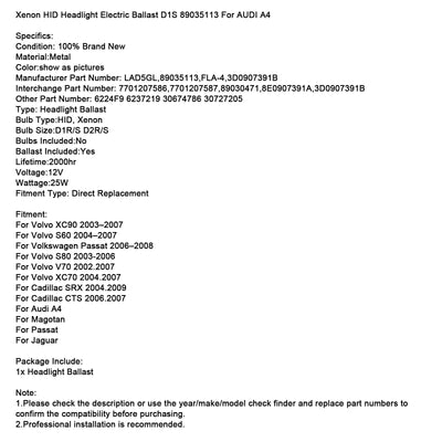 Xenon HID Headlight Electric Ballast D1S 89035113 For AUDI A4